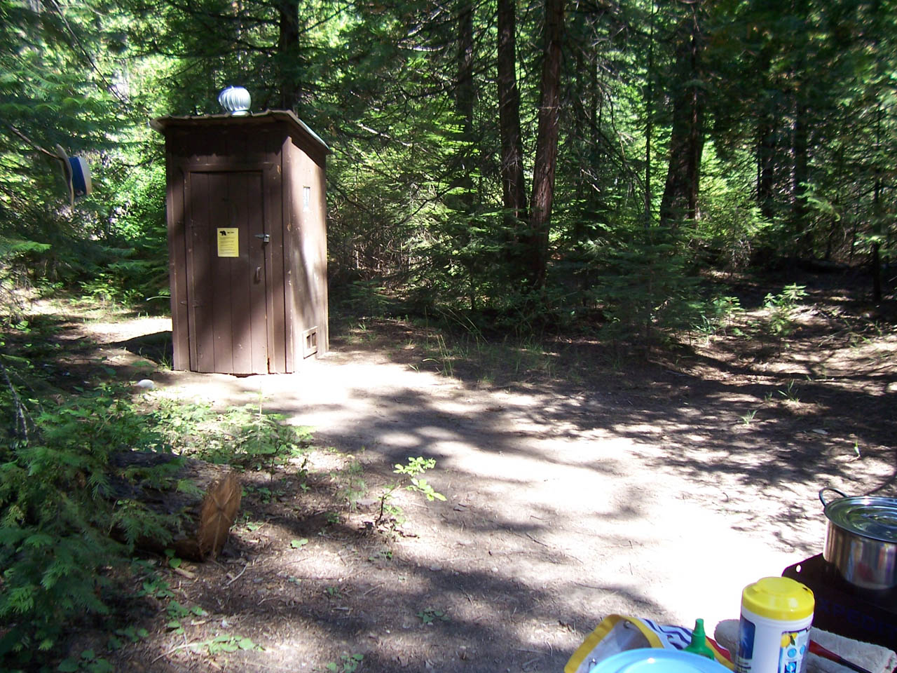 Walking past the table, we see the outhouse a good 20 feet away. One of the biggest disadvantages to being so isolated is the lack of plumbing.